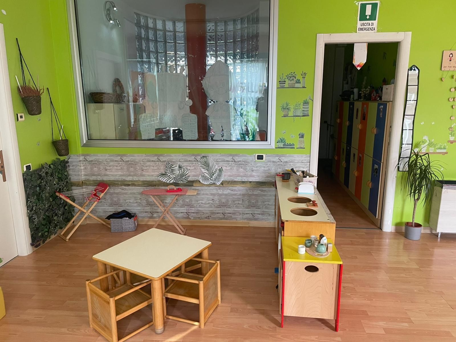 L’asilo Nasini all’insù è situato al primo piano (raggiungibile con scale o ascensore). È formato da una zona accoglienza, da un salone polifunzionale, una zona riposo, una cucina, un bagno per i bimbi ed un bagno per le educatrici (in totale 150 mq circa). Ampio spazio esterno attrezzato.